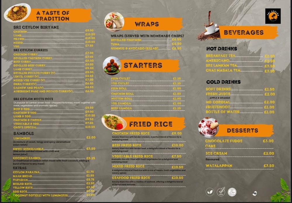 Located at 15 Whitehall Terrace, Sri Ceylon Cafe & Restaurant stands as a culinary beacon within Sunderland. Situated in the city center, this eatery makes for an accessible and delightful stop, whether you're out for a casual lunch, a weekend brunch, or a cozy dinner. The vibrant decor and inviting atmosphere immediately draw you in, making it an ideal spot for groups, families, or even solo diners looking to explore new tastes. The combination of traditional Sri Lankan cuisine and the café's friendly staff creates a welcoming vibe, inviting patrons to savor every moment. Visitors can easily find free parking options nearby, adding to the convenience when planning a visit. The consistent opening hours from Monday to Sunday ensure that cravings for authentic Sri Lankan flavors can be satisfied any day of the week.